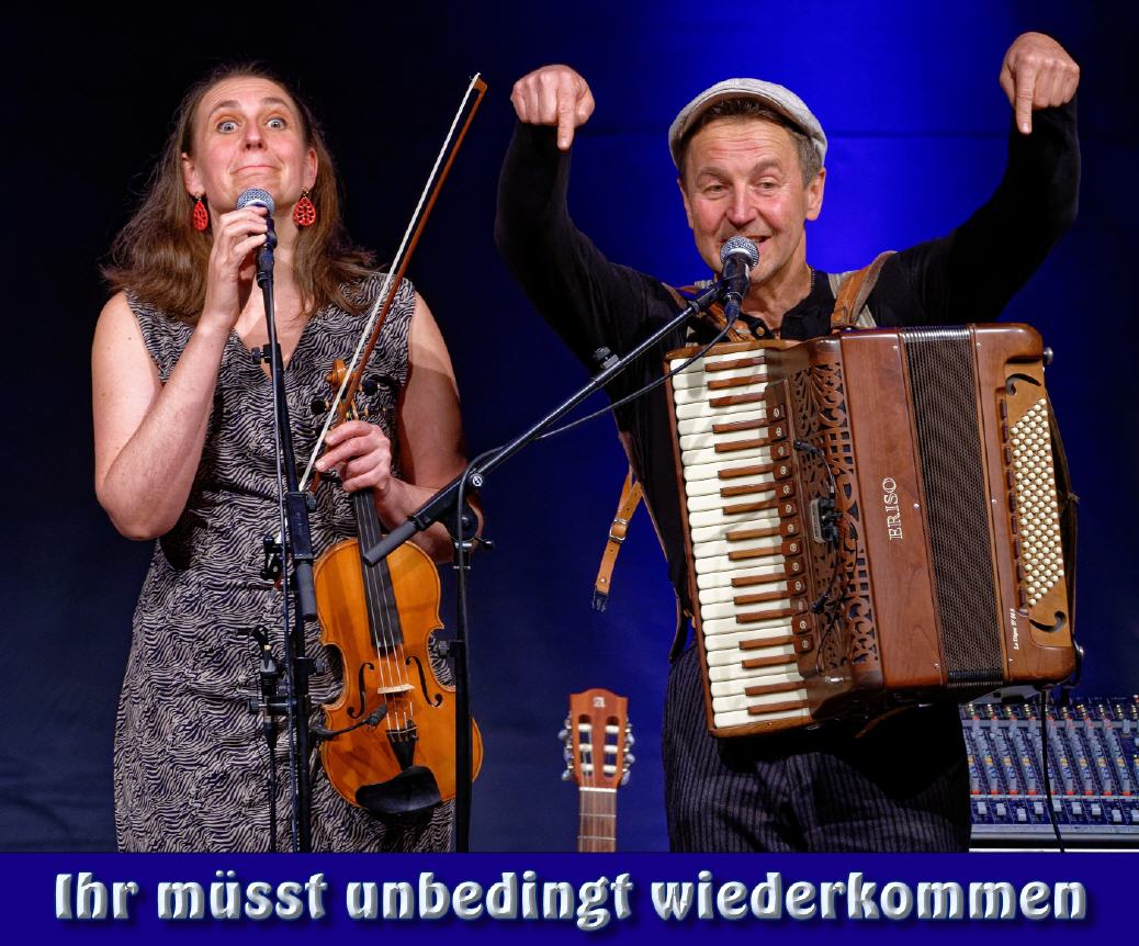 Groovig, spritzig, frech präsentieren die beiden Vollblutmusiker Marie-Josefin Melchior und Johann Zeller eine erstaunliche Bandbreite an konzertanter Weltmusik: Feuriger ungarischer Czardas, rassiger Tango, Swing, Klezmer, verträumter Valse Musette….